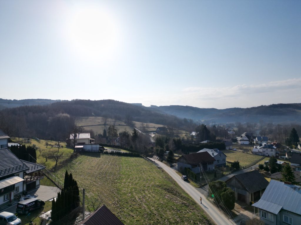 Działka usytuowana jest w spokojnej i zielonej okolicy, z pięknymi widokami na otaczający krajobraz. Bezpośredni dostęp do drogi gminnej zapewnia łatwą komunikację z pobliskimi miejscowościami oraz dostęp do niezbędnej infrastruktury.